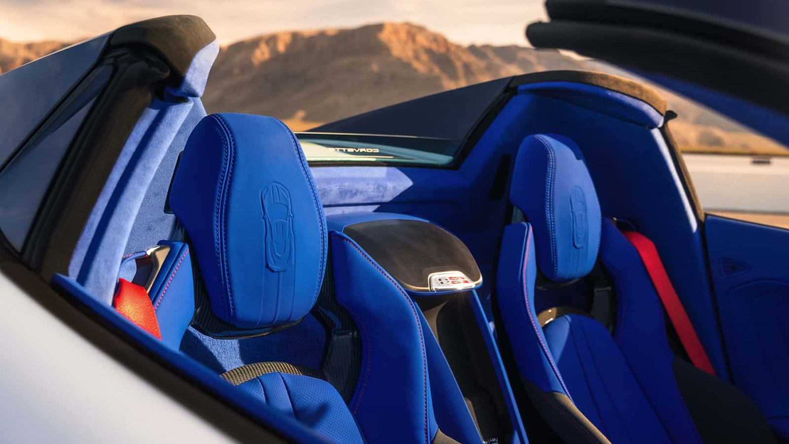 Chevrolet will offer a special Grand Sport Launch Edition featuring a Santorini Blue interior complemented by red contrast stitching, embossed headrests, a speaker plaque, and a distinctive steering wheel badge.