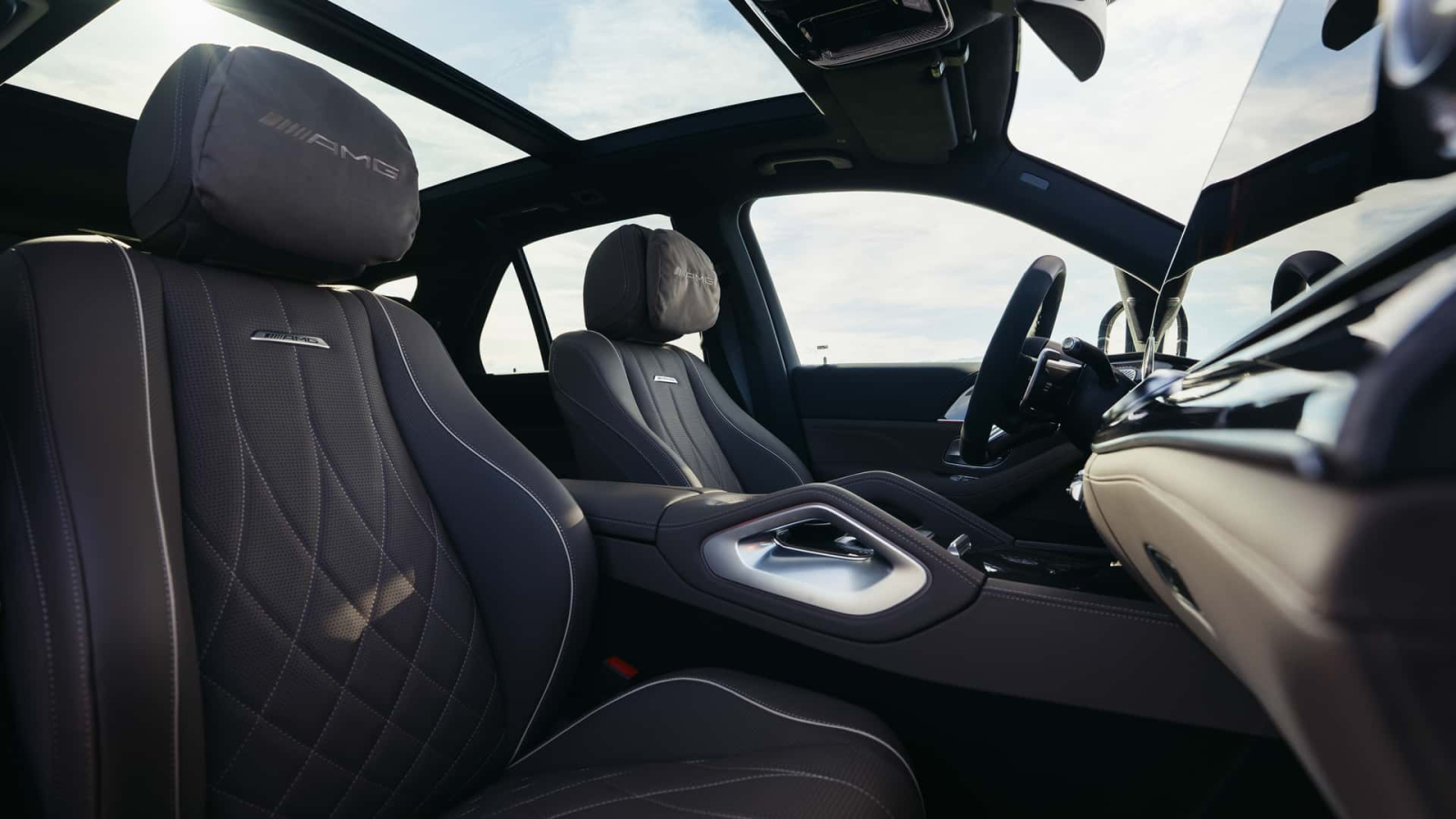 Distinctive AMG styling cues include a signature grille, quad exhaust outlets, and a sportier AMG steering wheel. New exclusive paint finishes are Manufaktur Patagonia Red Metallic and Manufaktur Cirrus Silver Magno.